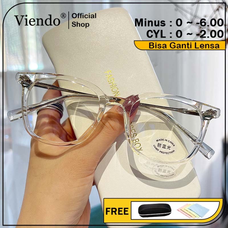 Viendo Kacamata Minus Photocromic Anti Radiasi Blueray Night Drive Bluecromic Wanita Pria Cowok Korea TR90 Frame Antiradiasi Kecamata Sinar Matahari UV400 Potocromic Fotocromic Kaca Mata Optik
