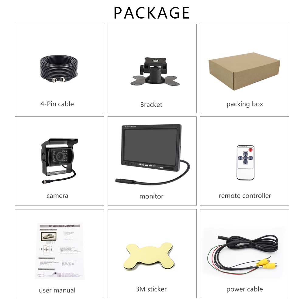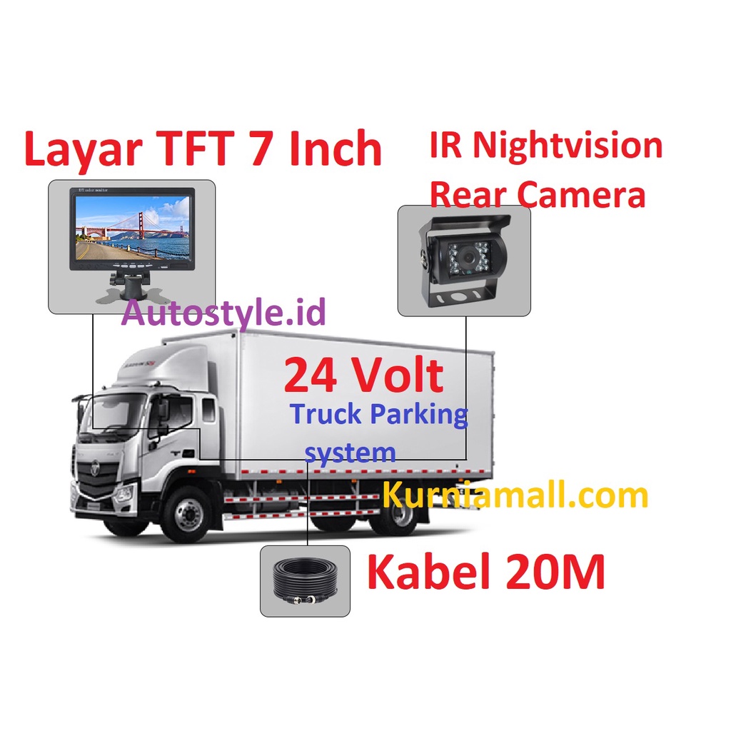 Paket Kamera parkir 24 Volt Truk Bus excavator Paket Lengkap Kamera parkir Layar 7 inch Kabel AV 20 Meter Kamera Mundur