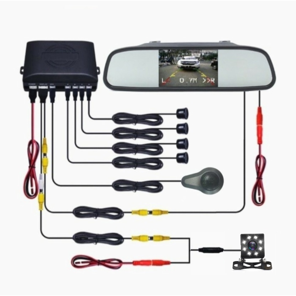 Monitor Spion 4.3 Inch + Kamera Mundur + Video Sensor Parkir 4 titik