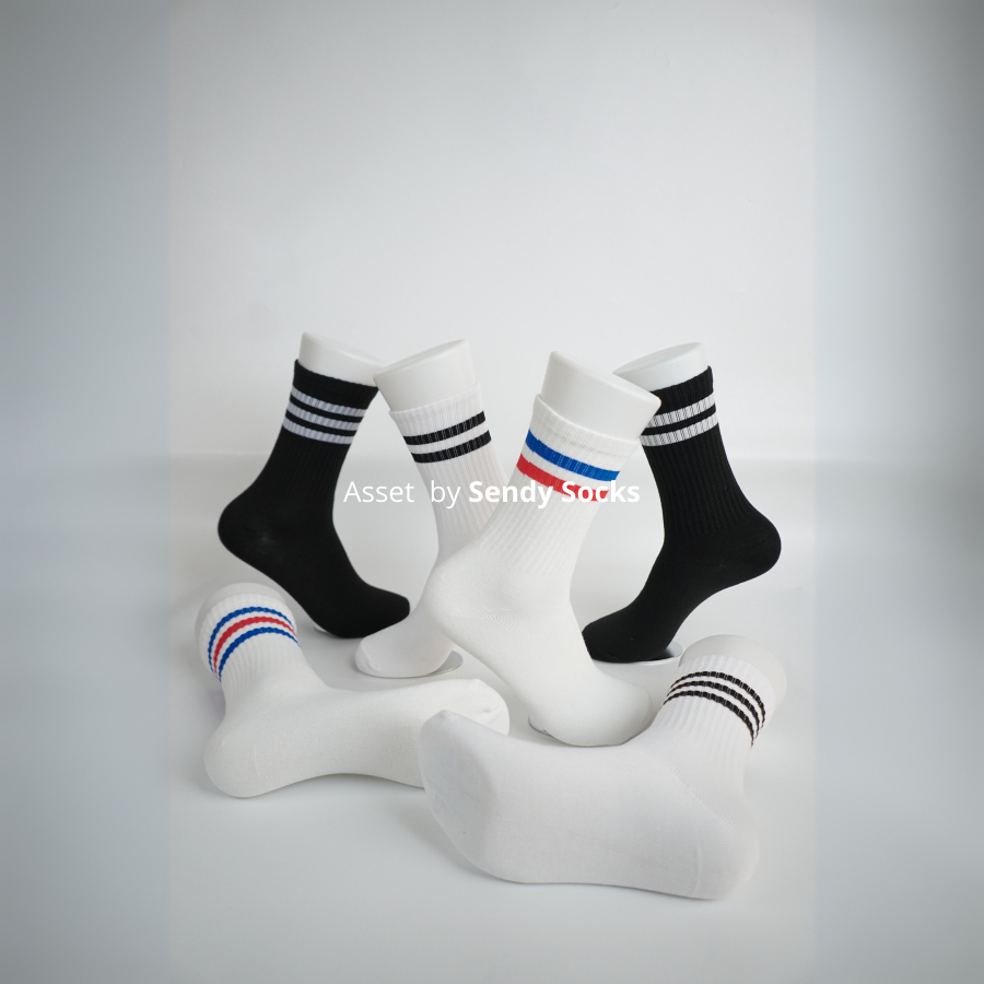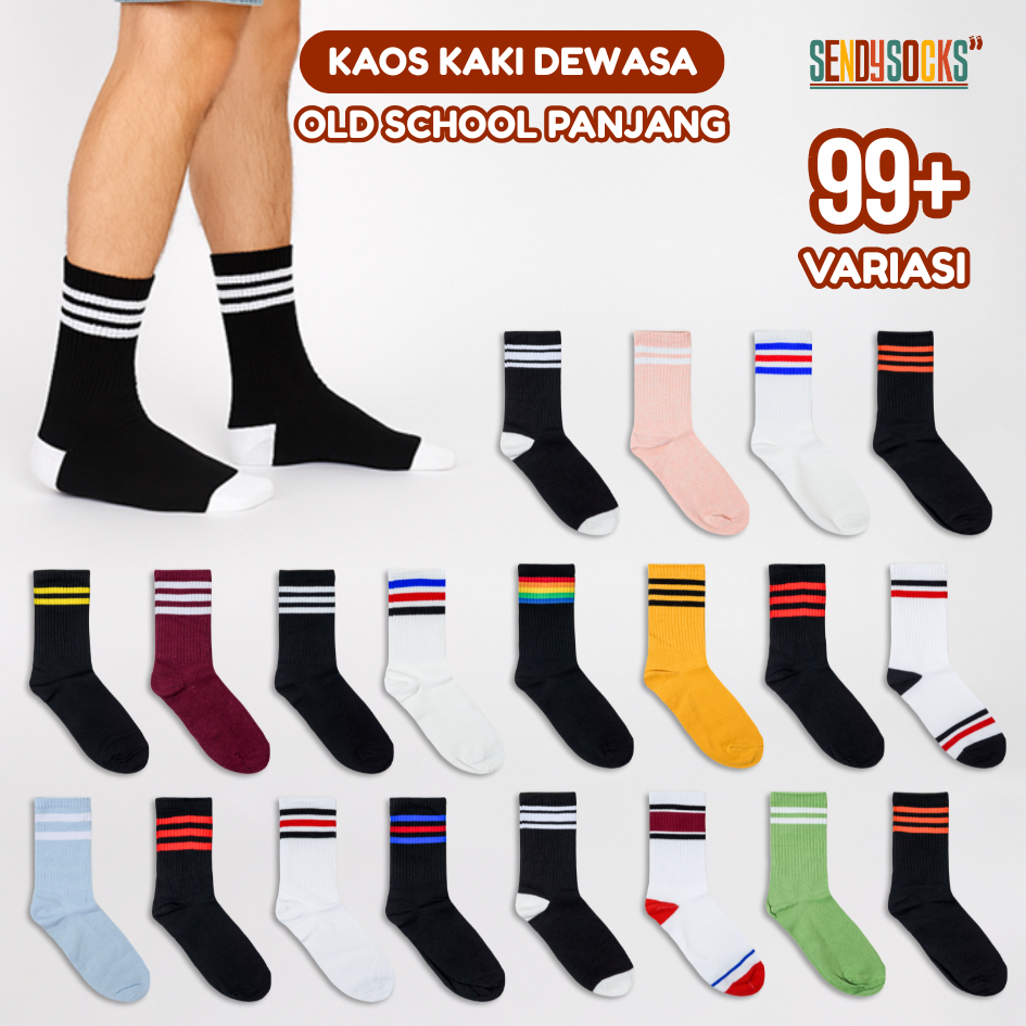 Kaos Kaki Strip Setrip Garis Pria Oldschool Skate Panjang Premium - Sendy Socks