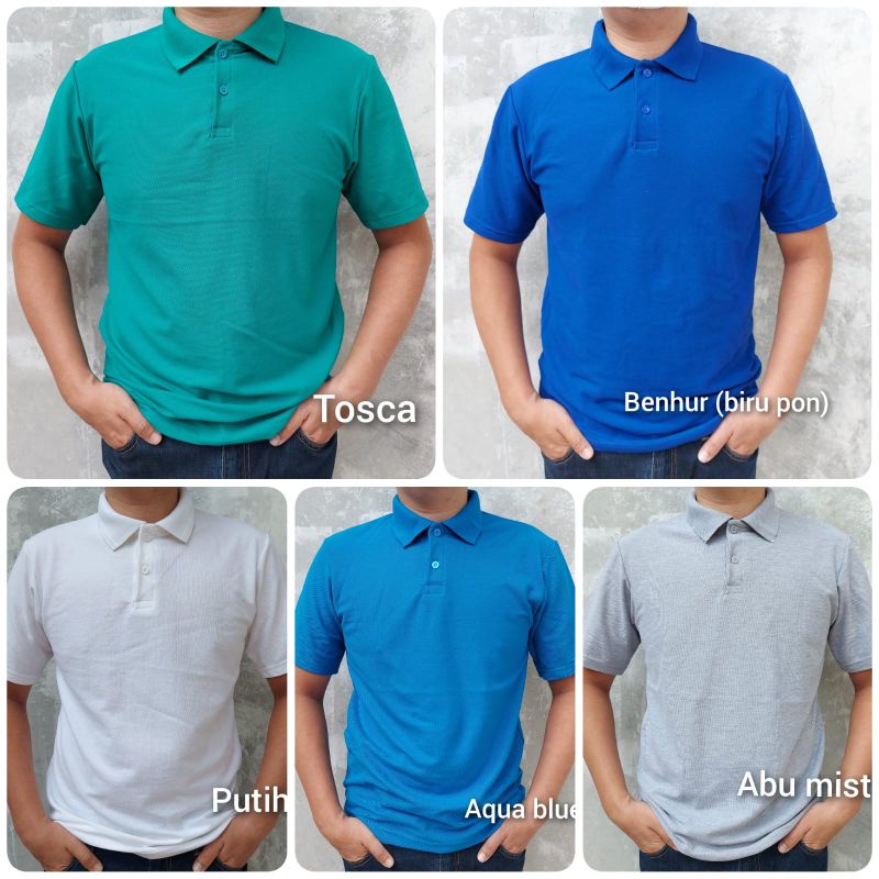 Kaos Kerah Polo Shirt Cotton Cvc Pique Knit 24S Lumehong Hitam Abu Tua Abu Misty Aqua Blue Putih Biru Benhur Coklat Tua
