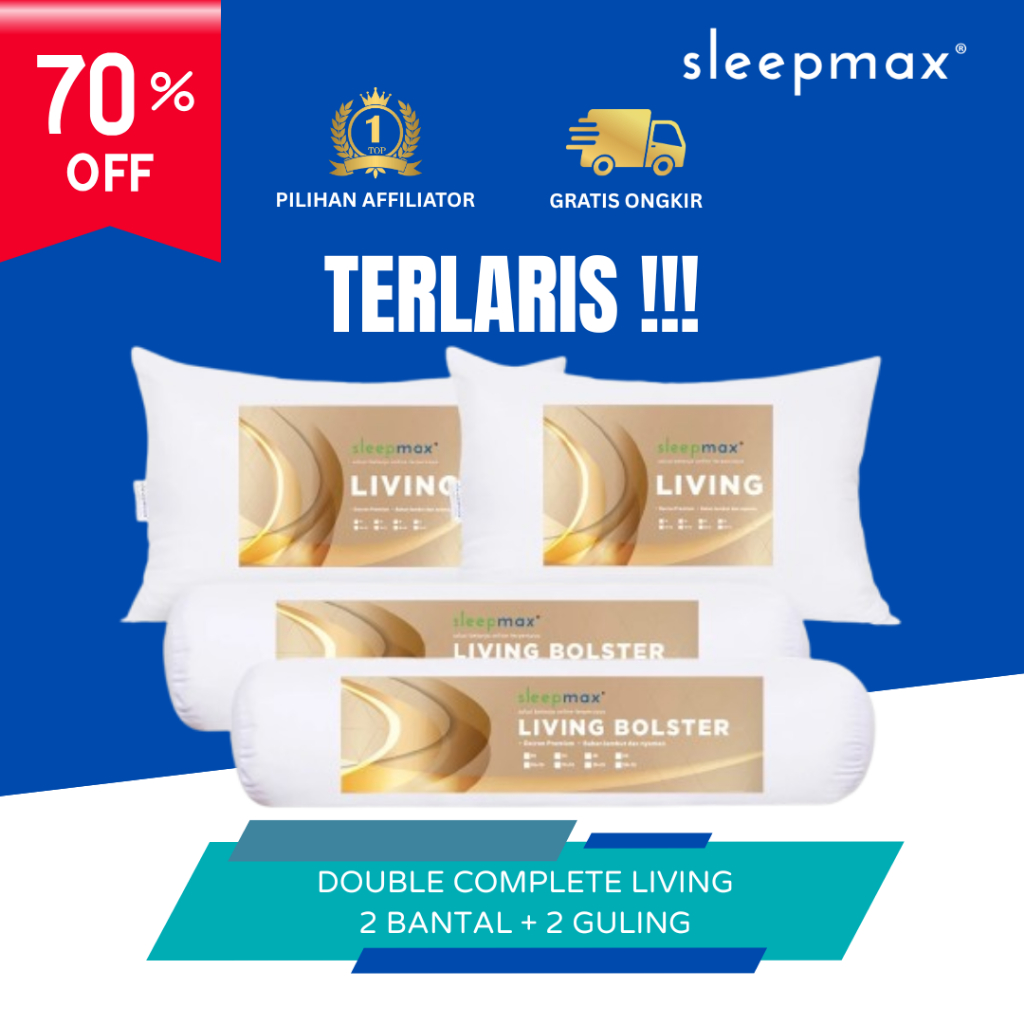 [Star]Sleepmax Paket 2 Bantal + 2 Guling Double Complete Living Pillow Bolster Super Premium Lembut dan Ringan Anti Aler