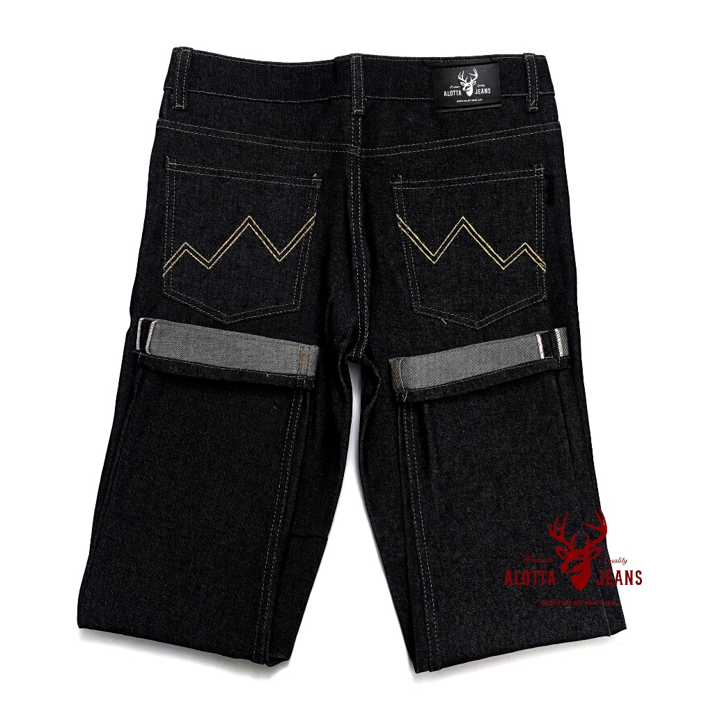 Jeans Pria Regular Fit Warna Hitam – Bahan Selvedge 15Oz Premium, Bisa Feding