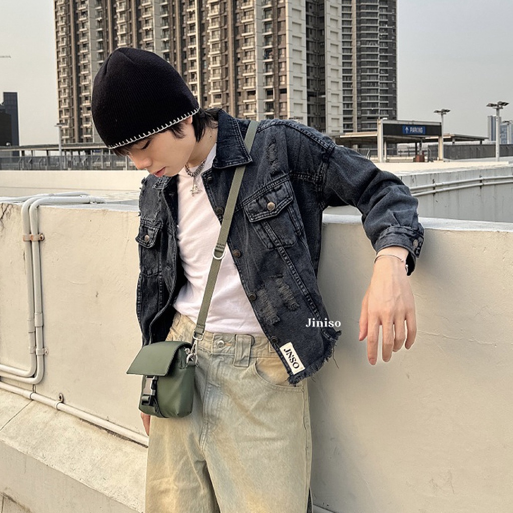 Jiniso - Pria Oversize Jaket Jeans