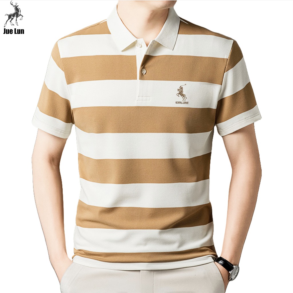 Jue Lun Polo Shirt Pria Kemeja Bergaris Pria Kaos Kerah Bergaris Pria Kaos Modis