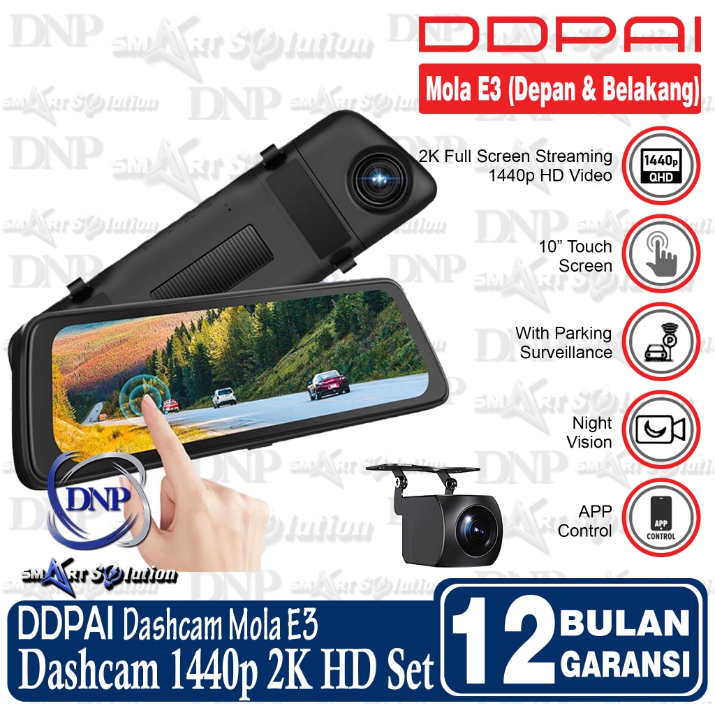 DDPAI mola E3 Dashcam 1440p 2K HD 24 jam Monitor Parkir Depan&Belakang - Front+Rear, Camera Only