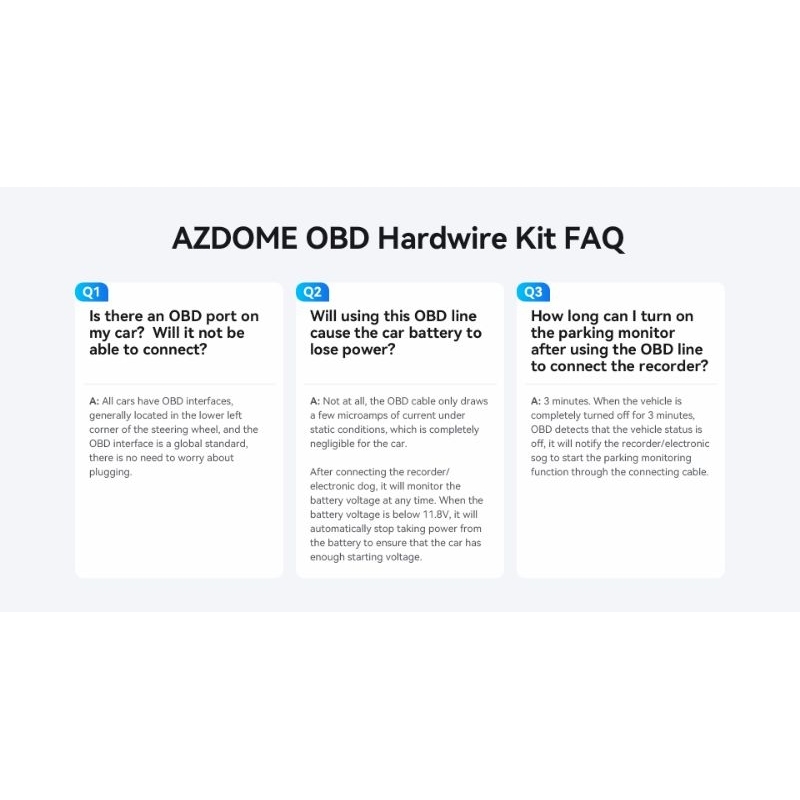 Azdome OBD Hardwire Kit Dashcam 24Hour Parking Monitoring System