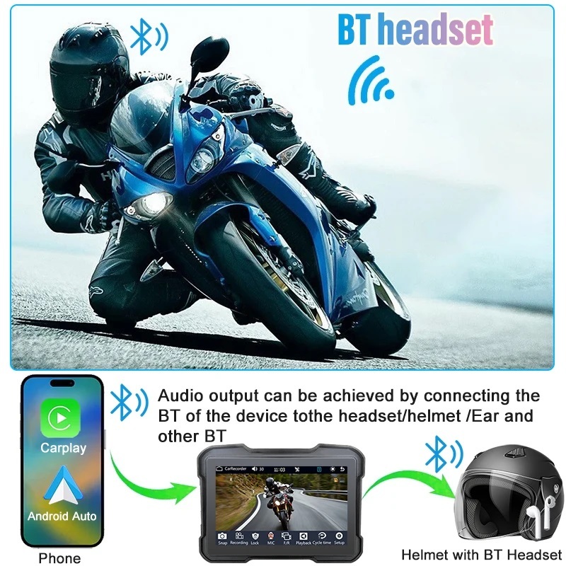 Gps Navigasi Maps 5inch Dashcam Recorder Android Auto Iphone Carplay Kamera Front-rear Full HD1080p Sepeda Motor/Perekam