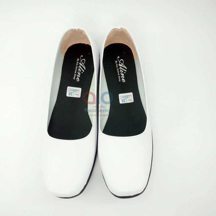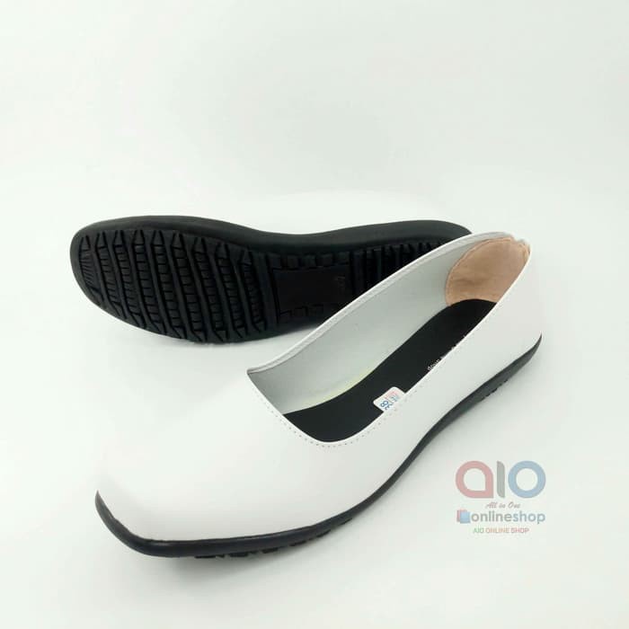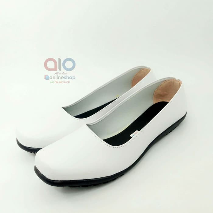 SEPATU Pantofel Wanita Flat Putih Polos Formal Kerja Bidan Perawat Dokter AW18