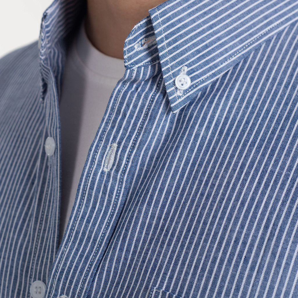 Kemeja Garis Pria Woodcutter Basic Luxton Stripes - Denim Blue Biru Lengan Panjang