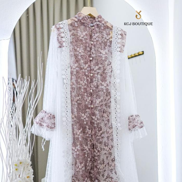 Kcj - Neira Outer Tunik Mewah Tile Bordir Kombinasi Sprinkle - Cream