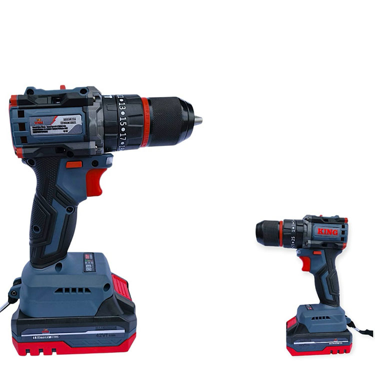 Bor Baterai KING 42Vf Brushless 13mm | Cordless Impact Drill Beton Besi Kayu 3Mode Full Set LED