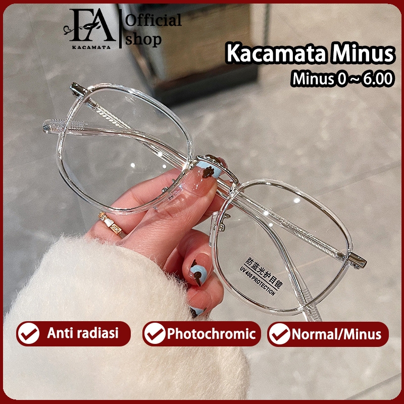 FOMAMATA Kacamata Minus +TR90 Wanita Bingkai Bulat Anti Radiasi Fashion Photocromic