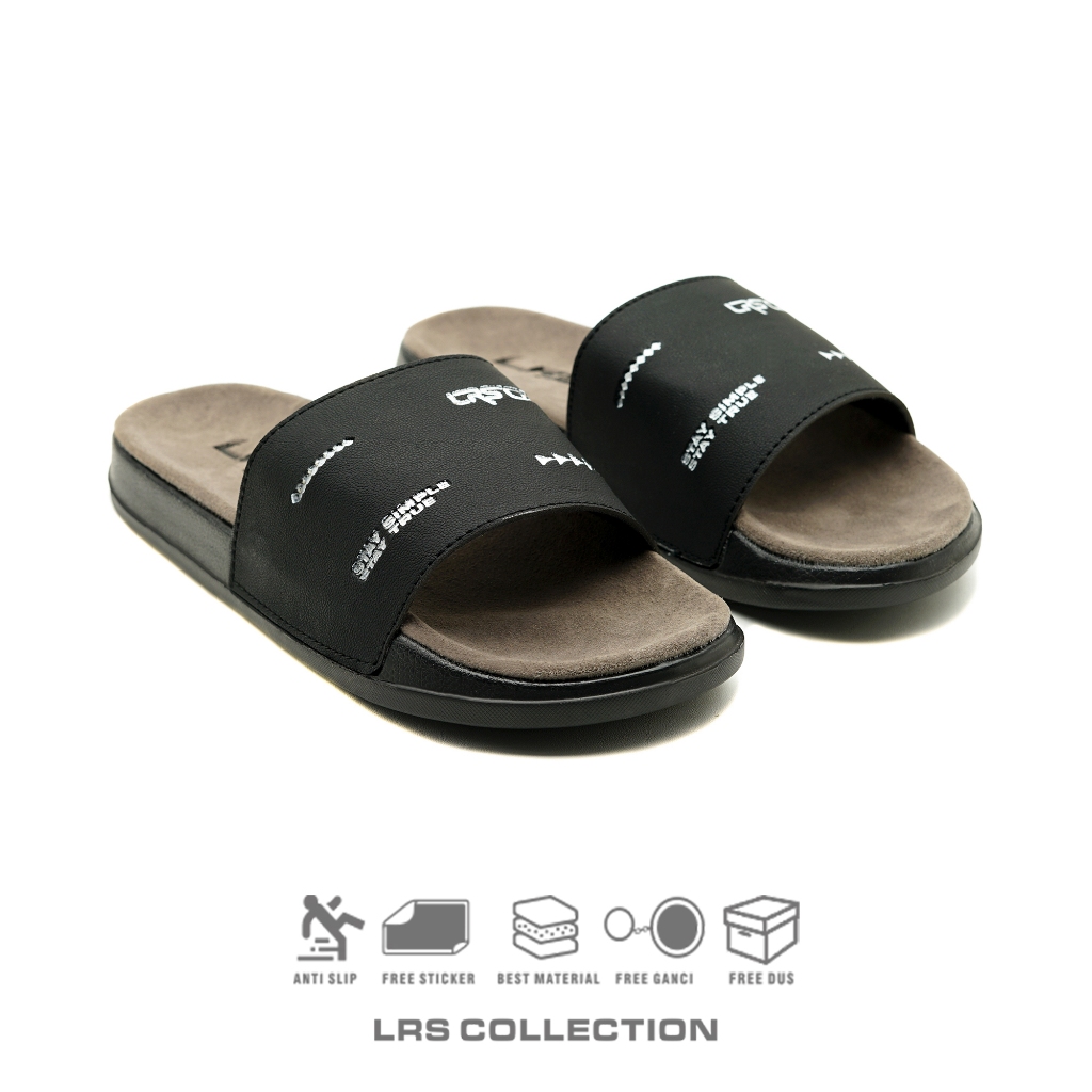 Lrs Collection - Sandal Pria Wanita Luxurious Suede - Grey Black