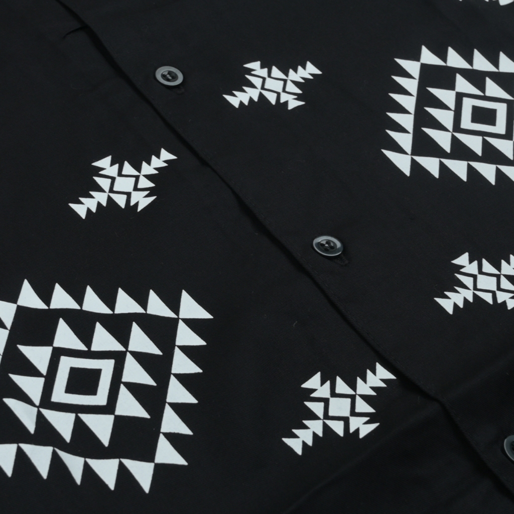Mickout Tribe Casual Shirt - Kemeja Kasual Print Pria Katun Rayon Relaxed Fit Lengan Pendek - Hitam