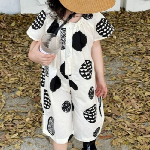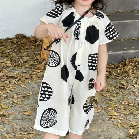 Acadiakids - Jumpsuit Anak Perempuan Darcela Terusan Panjang Lengan Pendek Motif Abstrak Premium Terlaris Terbaru
