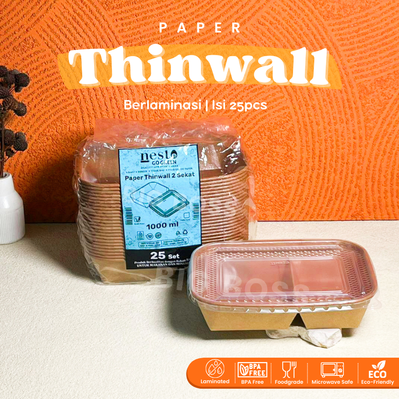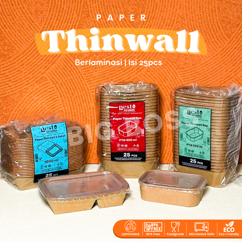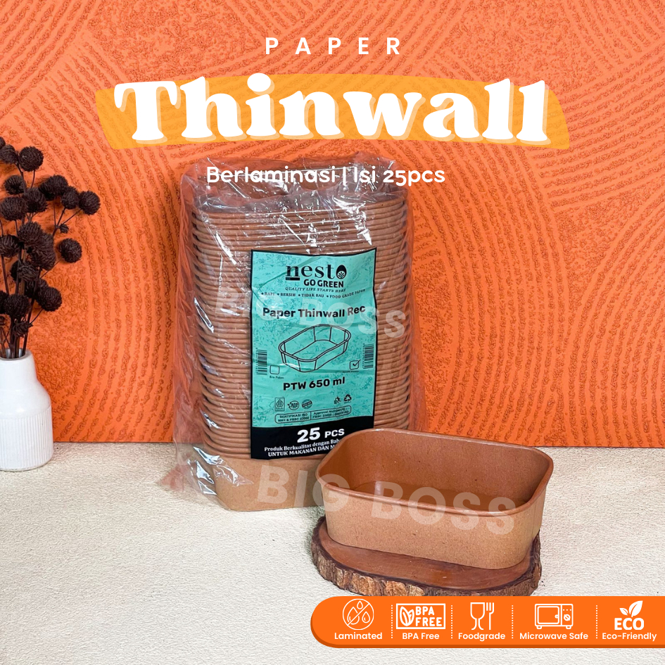 [ISI 25PCS] Paper Thinwall Rectangle Container Kraft Laminasi 650ml 800ml 1000ml +Tutup / Paper Rectangle Kotak Makan Ke