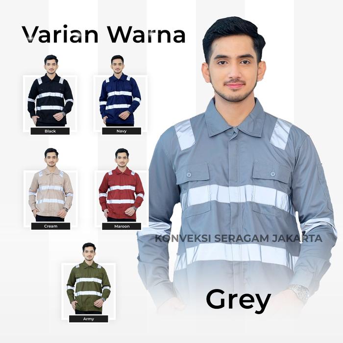 Baju Kemeja Wearpack Seragam Proyek Tambang Safety Abu Grey Panjang