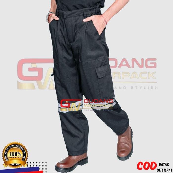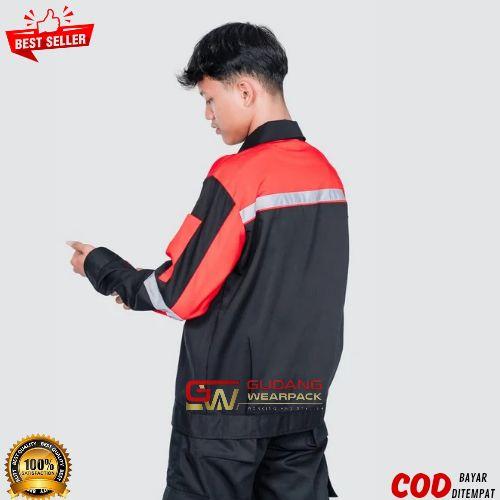 Wearpack Setelan Baju Kerja Lengan Panjang Warna Hitam Kombinasi Merah Dan Celana Hitam