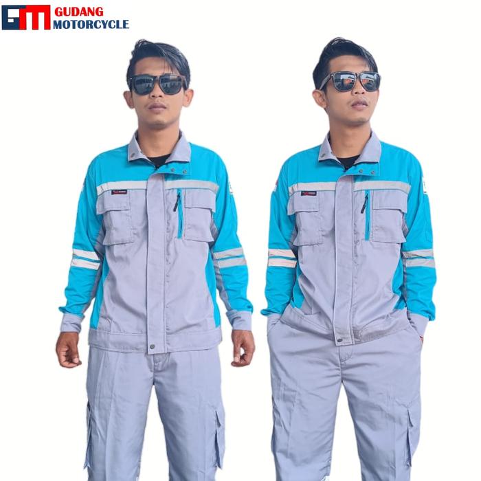 Baju Safety Wearpack Satu Setel Atasan dan celana Modist dan keren Abu biru