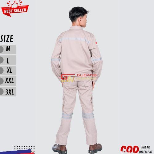 Wearpack Setelan Baju Kerja Lengan Panjang Warna Coksu Polos Dan Celana Coksu