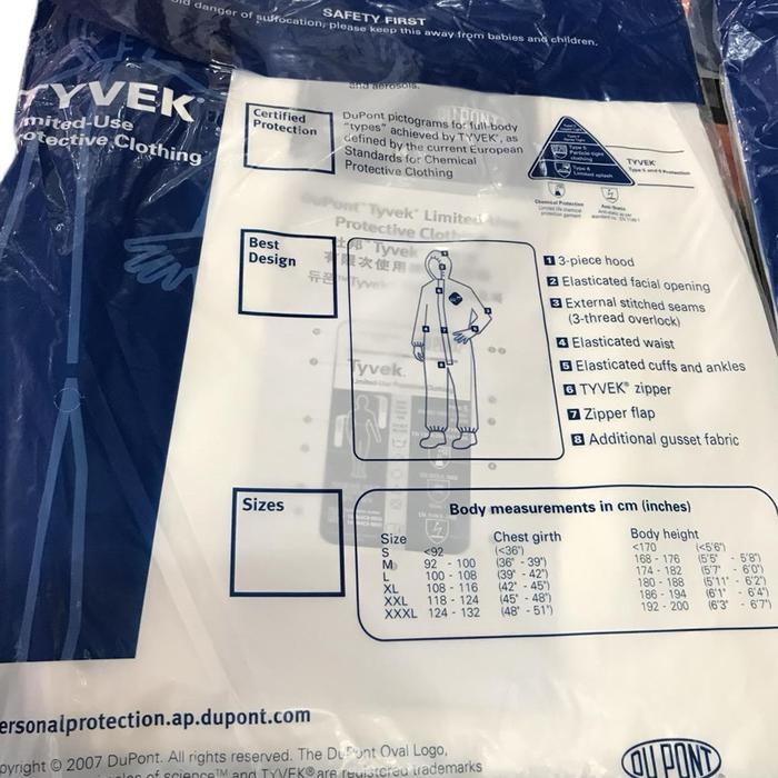TYVEX DUPONT BAJU DISPOSIBLE BAJU LAB