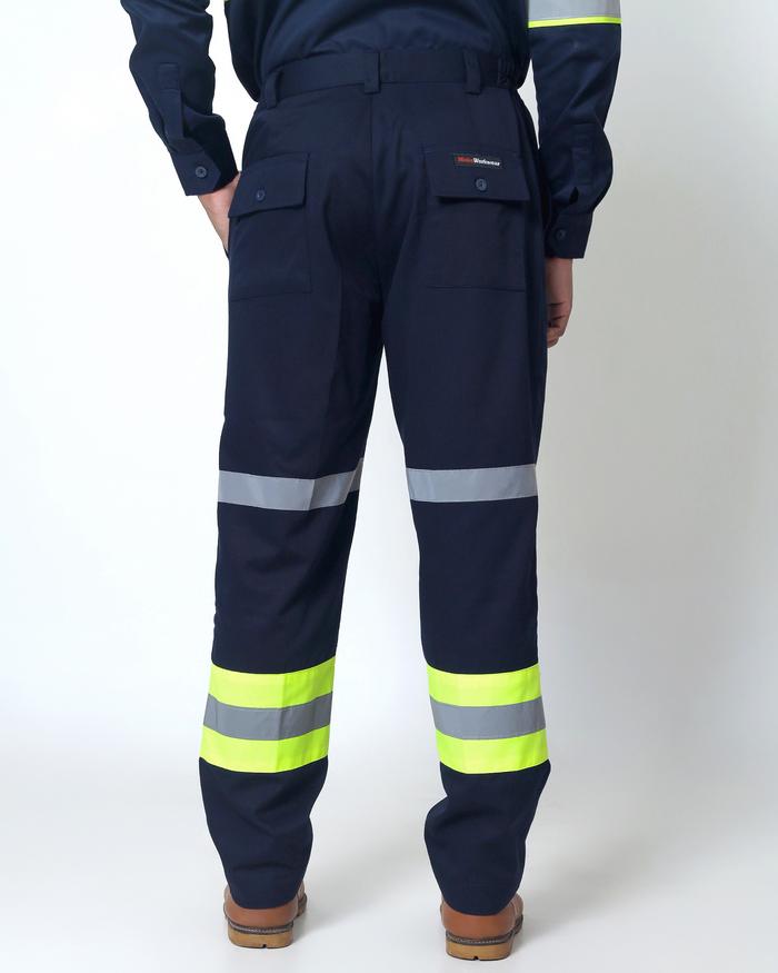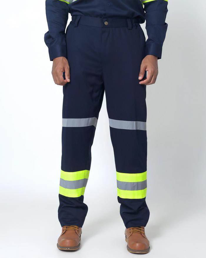 Mokoworkwear - Celana Safety Pants Safety Lime Navy Scotchlite Mokoworkwear Bahan Drill Katun