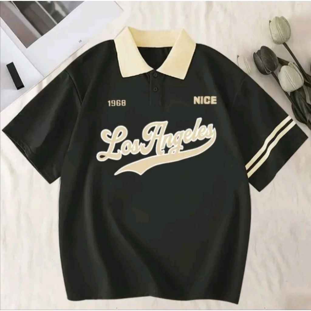 Kaos Tshirt Polo Motif Los Angles Kaos Polo Pria Wanita Bahan Catton 24S