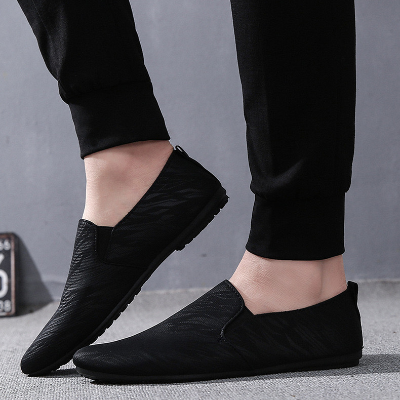 Highland Sepatu Slip on Pria Hitam Sepatu Slop Kerja Full Black Casual Formal Pantofel Kantor MR214
