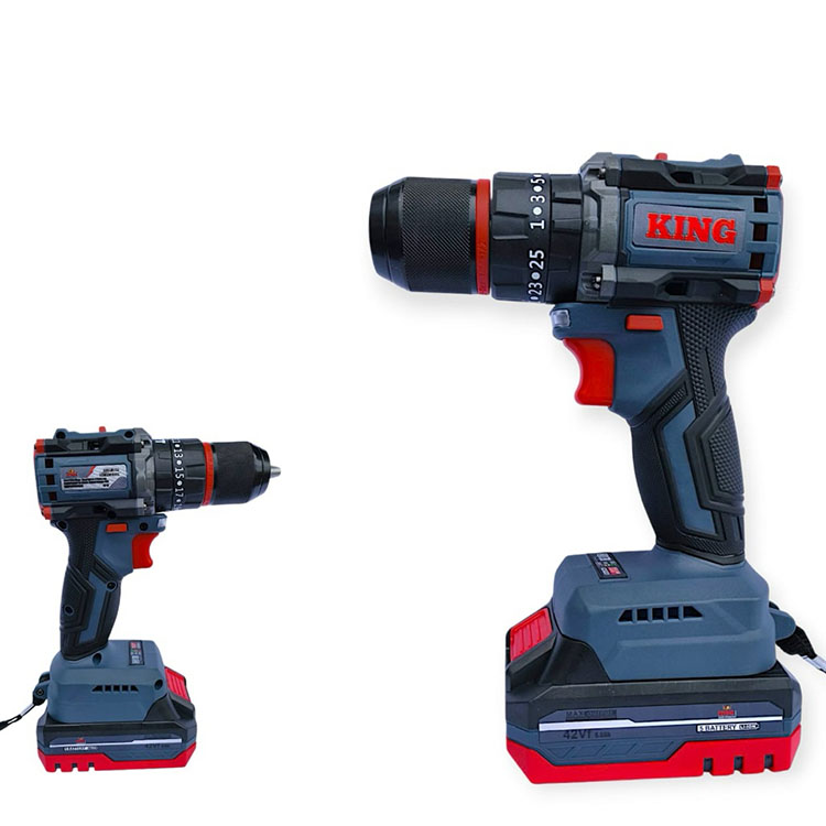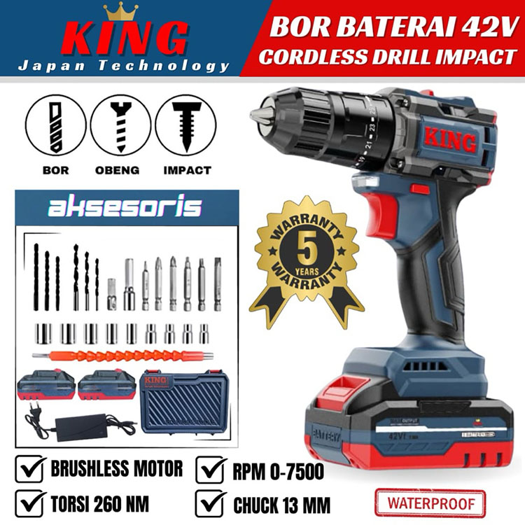 Bor Baterai KING 42Vf Brushless 13mm | Cordless Impact Drill Beton Besi Kayu 3Mode Full Set LED