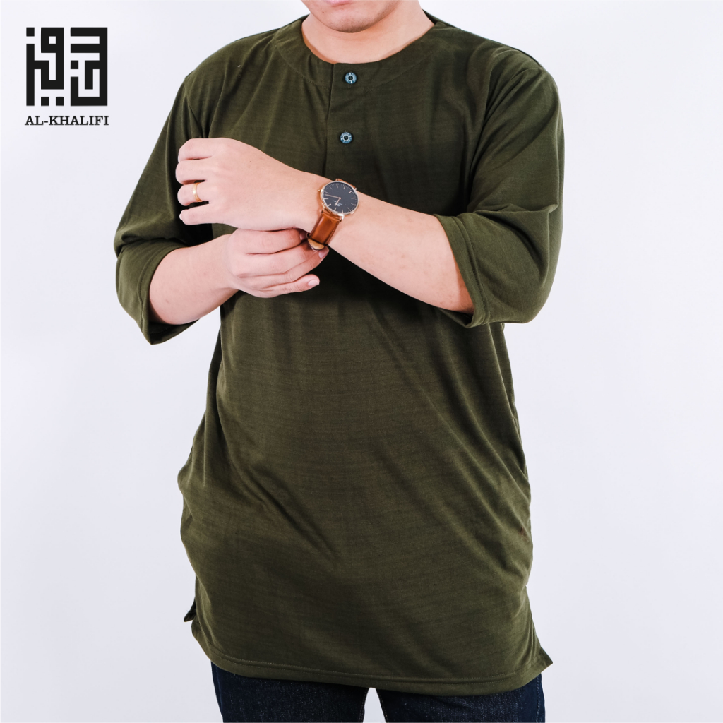 AL-KHALIFI - Kaos Koko Kurta Lengan 3/4 Baju Koko Muslim 4ppi - Army