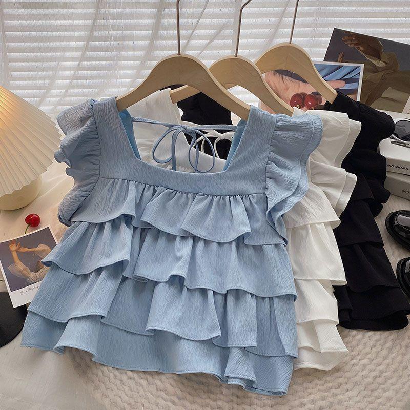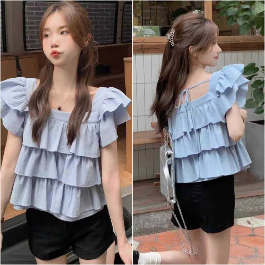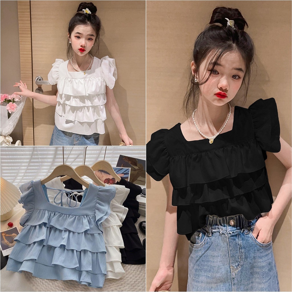 3-10Tahun Atasan Blouse Anak Cewek Remaja Perempuan Korea Ruffle 3 Layer