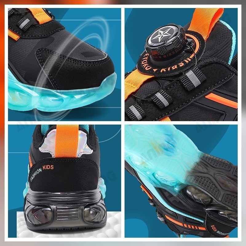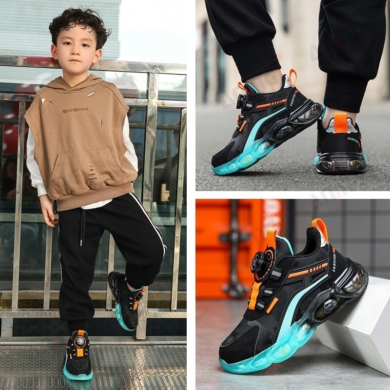 Aning Aningboy-Sepatu Sekolah Anak Laki Laki Sepatu Olahraga Lari Warna Hitam Sol Lembut Sepatu Sneakers Dan Nyaman Fashion