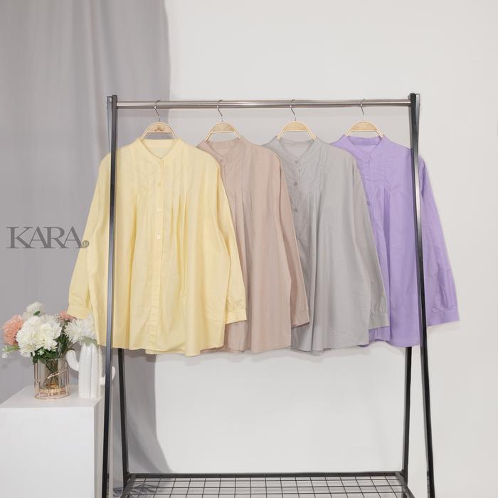 Kara.Id Mirai Blouse Blouse Lengan Panjang Wanita Atasan Wanita Blouse Kantor Blouse Katun Baju Fit - Kuning Muda