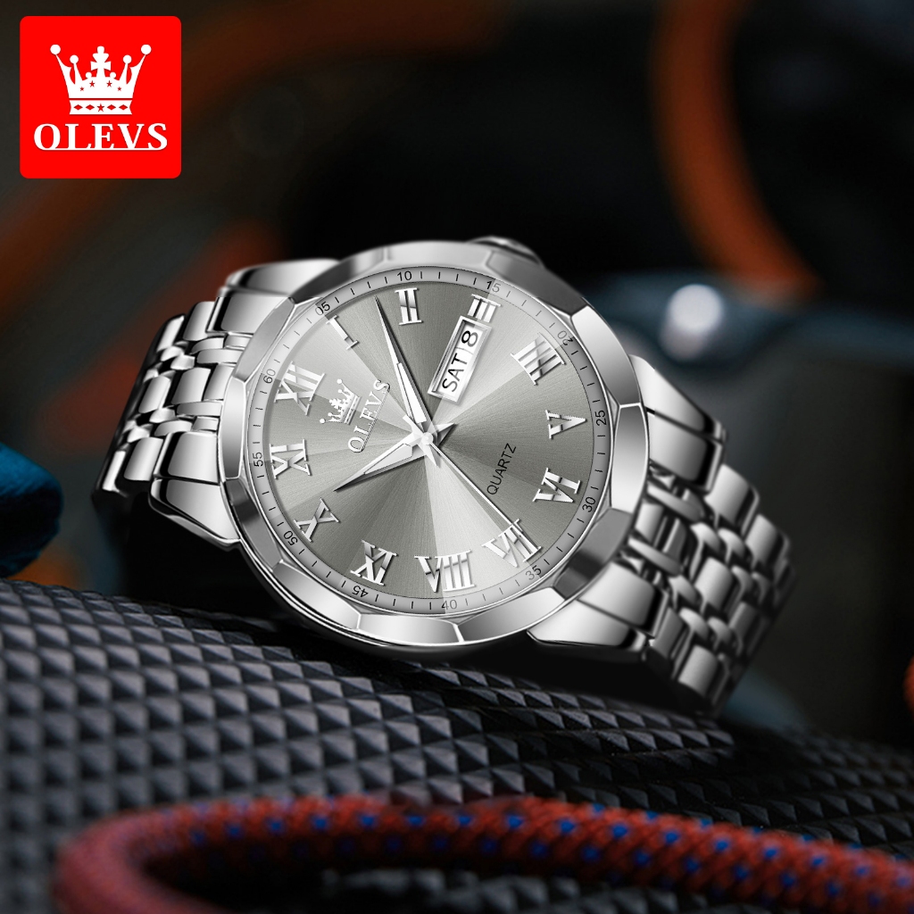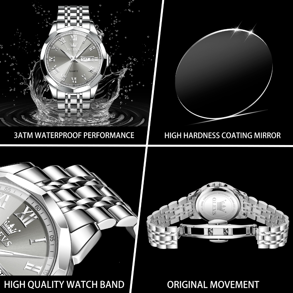 Olevs Jam Tangan Pria Anti Air Original Analog Stainless Steel Keren Casual Jam Tangan Rantai Pria Men Watches 9990