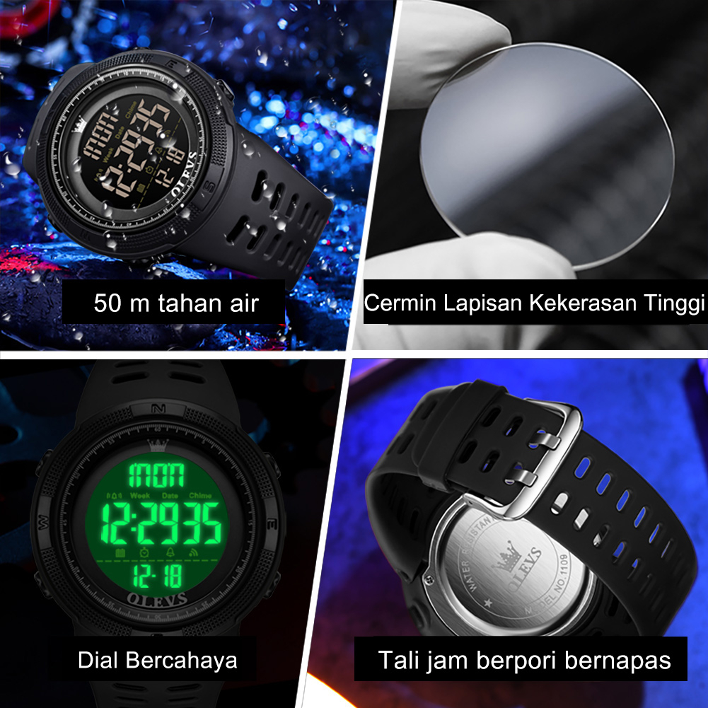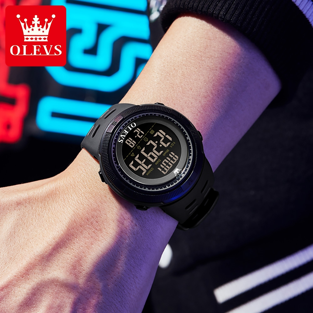 Olevs Jam Tangan Pria Anti Air Original Led Digital Tampilan Ganda Analog Multi Fungsi Jam Alarm Pengatur Waktu Men Watc