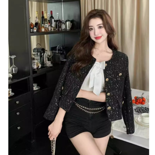 EMITA BLOOM baju christmas er burgundy wanita kekinian korean style tweed blazer plus size cute croptop formal er merah kondangan simple elegan