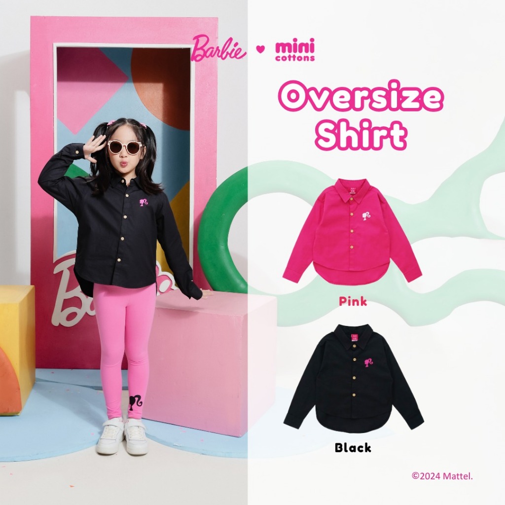 Barbie X Minicottons Kemeja Oversize Shirt Bordir Anak Perempuan 2-12 Tahun