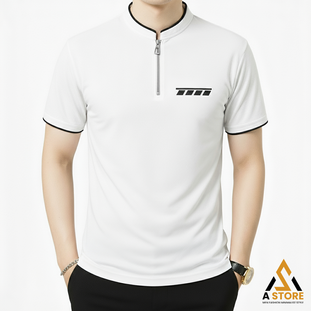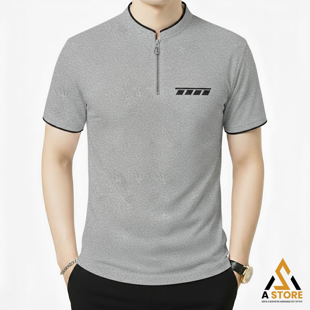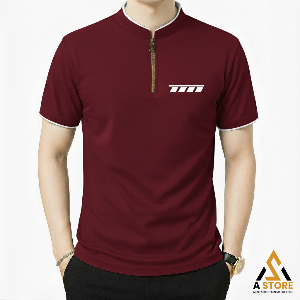 Kaos Polo Shanghai Saku Dada Motif Resleting Premium Distro - Kaos Kerah Shanghai Pria Saku Polet Zipper Keren