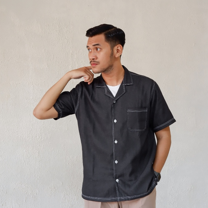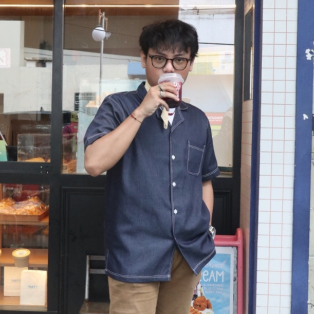 Kemeja - Denim - Kerah Terbuka - Lengan Pendek - Tokyo