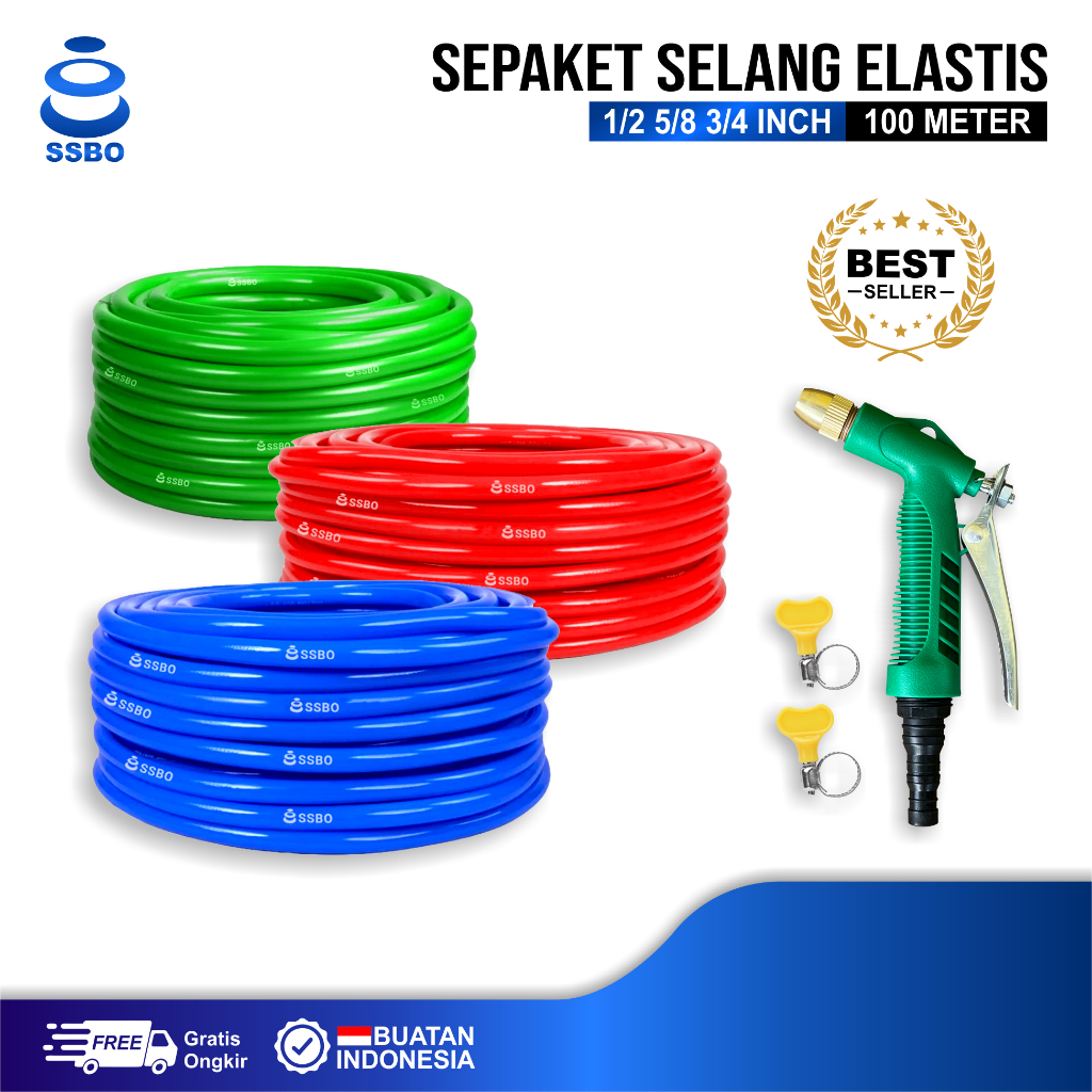 SSBO Selang Air Elastis 100 Meter 1 ROL 1/2 5/8 3/4 Inch / Selang Taman Kebun 1 Rol Cuci Motor Mobil