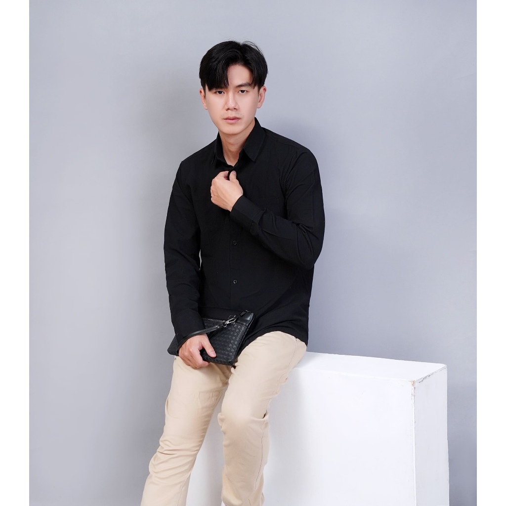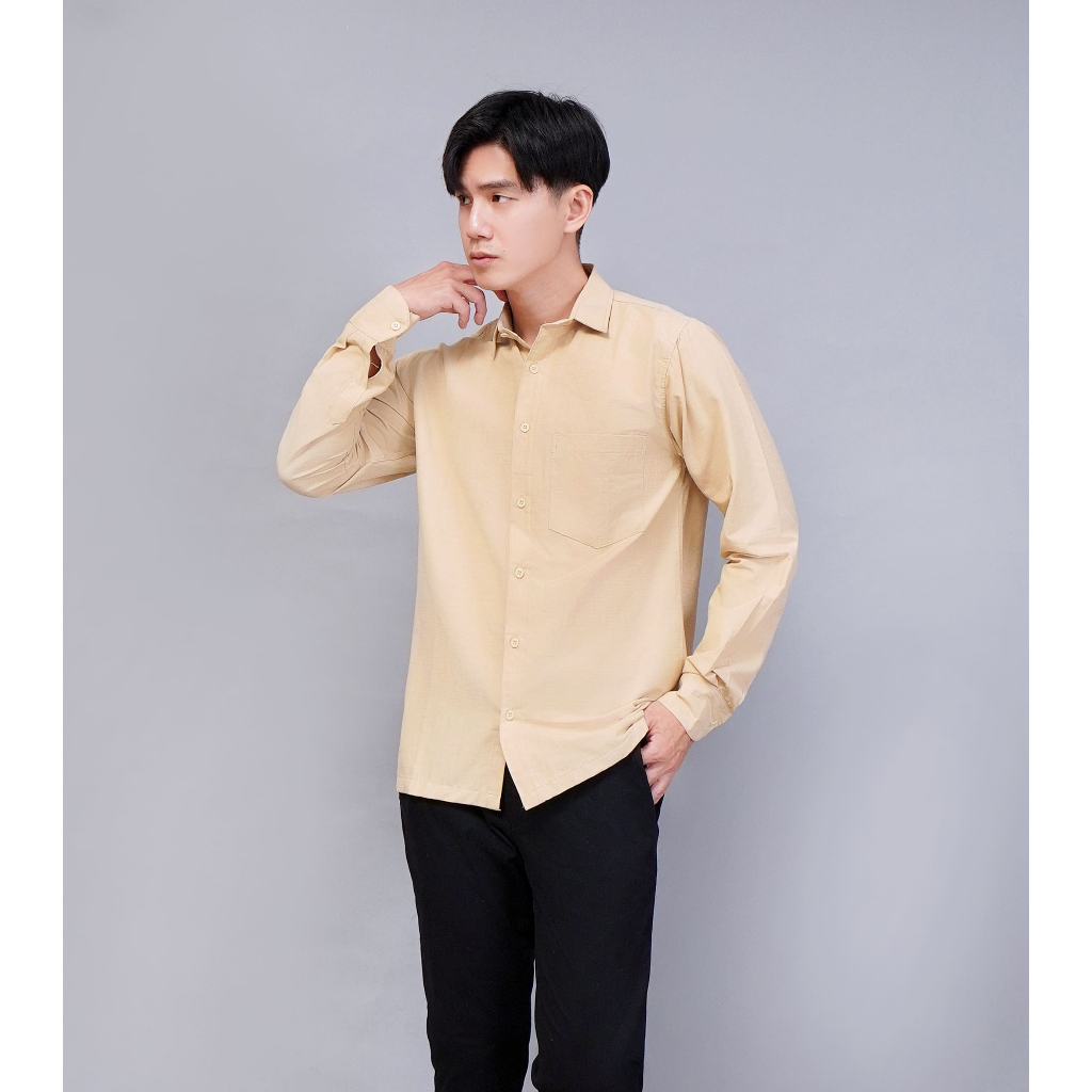 Kemeja Pria Polos Bahan Katun Lengan Panjang Premium Pkl Simple