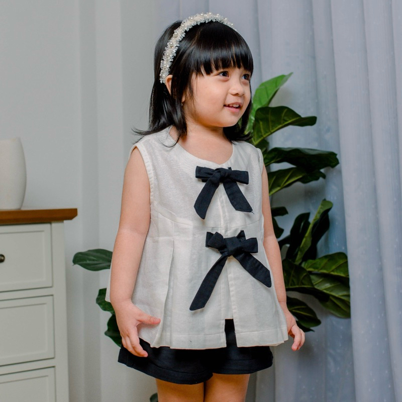(1-8 Tahun) Lexa-Atasan Anak Perempuan Pita | Blouse Anak Perempuan Korea | Blouse Anak Perempuan | Baju Anak Perempuan Lengan Buntung 1-8 Tahun | Baju Couple Mommy And Kids | Baju Couple Ibu Anak