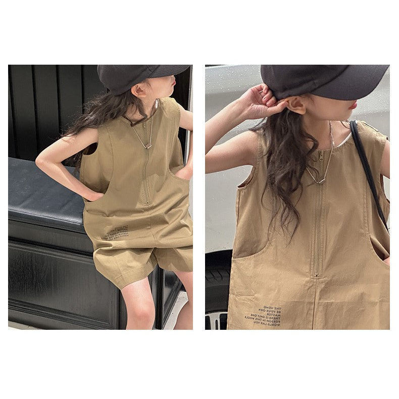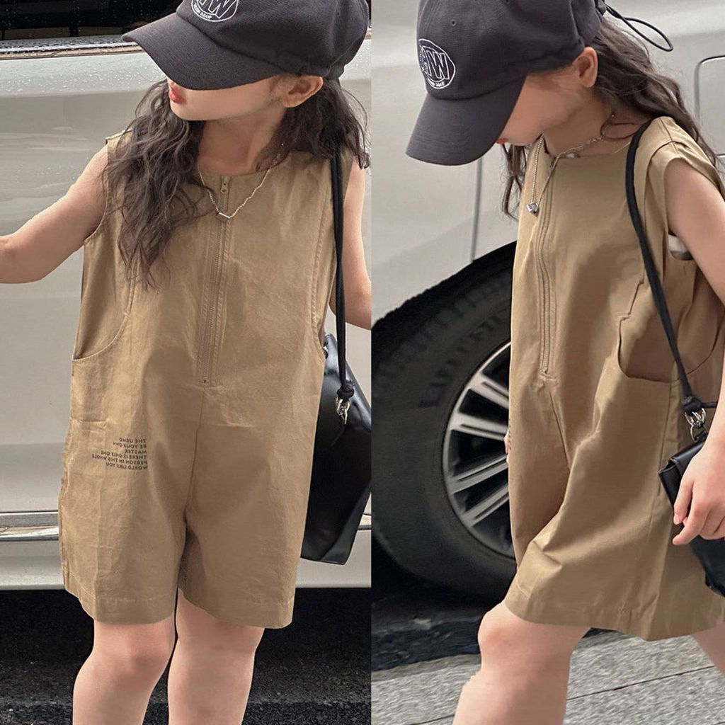 Baju Setelan Jumpsuit Tanpa Lengan Bawahan Pendek Fashion Anak Perempuan - Motif Casual