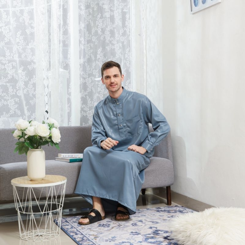 Family Muslim - Jubah Gamis Pria Usia Mulai 14 Tahun 4ppi Lengan Panjang Madani Navy