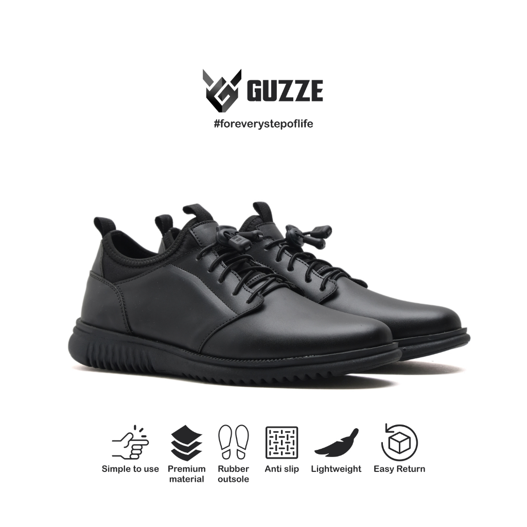 Sepatu Pria Casual Sneakers Formal Guzze Damian Black Pantofel Kerja Kantor