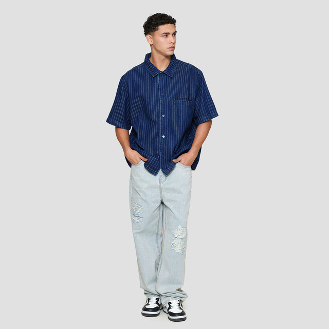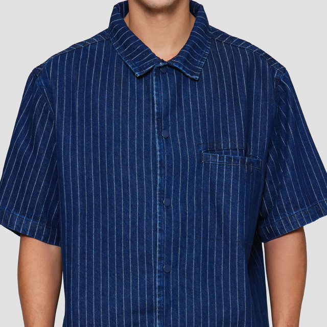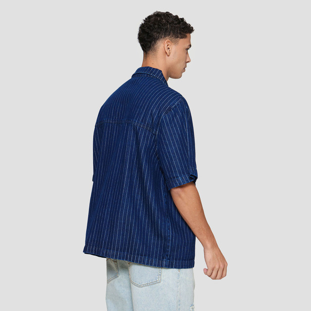 Nevada Plain Stripe Boxy Oversize With Pocket Kemeja Denim Pria 122812583