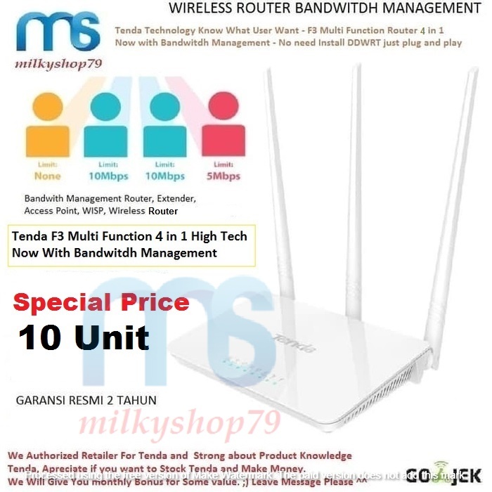 Tenda F3 Easy Setup Router 5dBi 4 in 1 300Mbps