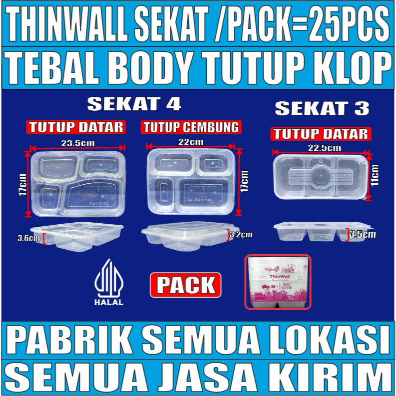 Thinwall 4Sekat Tebal 40gr Tutup Datar n 4 Sekat Cembung Victory n 3Sekat RL3 Long Klir Pack JSP Murah Gratis Ongkir