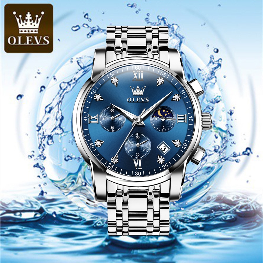 Olevs Jam Tangan Pria Anti Air Original Stainless Steel Chrono Aktif Cowok Luminous Kalender Analog Men Watch Mode 2858